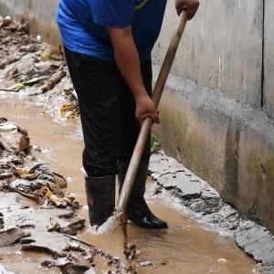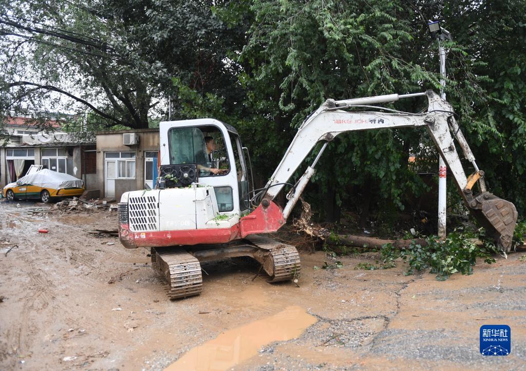 受臺風“杜蘇芮”影響,北京自7月29日開始連續強降雨,西部、西南部、南部遭遇特大暴雨。受降雨影響,位于北京市房山區的部分區域發生山洪災害,工作人員與當地村民有序清理受災現場。