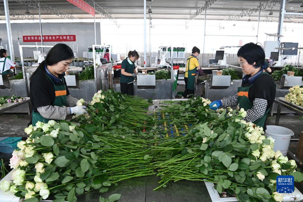 今年以來,甘肅省蘭州新區現代農業示范園花卉產業基地不斷拓寬銷售渠道,通過“線上+線下”同步進行銷售,讓產自西北地區的鮮切玫瑰銷往全國各地。