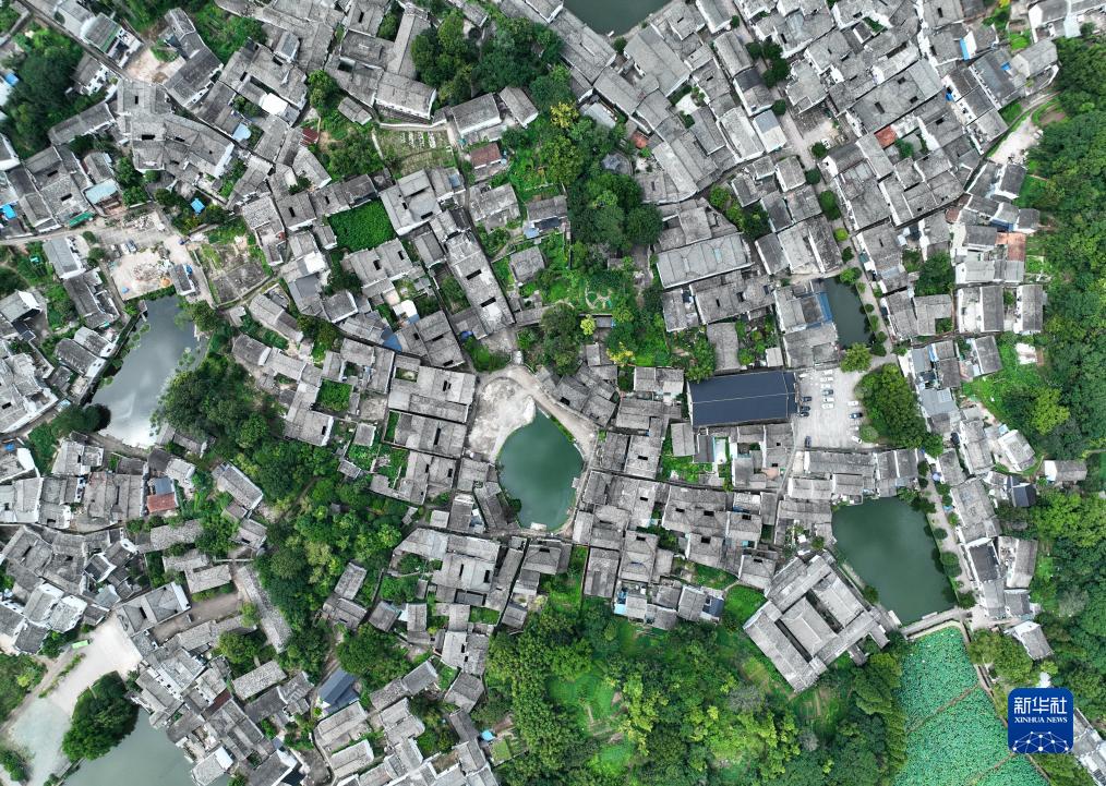 鳥瞰諸葛村(無人機照片,8月1日攝)。