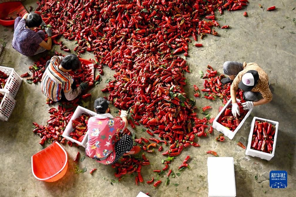 近日,安徽省蚌埠市五河縣朱頂鎮陳臺村的3000余畝辣椒迎來收獲季,村民們忙著采摘、搬運、裝車,一派喜人的豐收景象。近年來,安徽省蚌埠市五河縣朱頂鎮積極調整農業產業結構,采取“合作社+農戶+市場”的模式,結合市場需求種植特色辣椒品種,帶動當地農民增收致富。