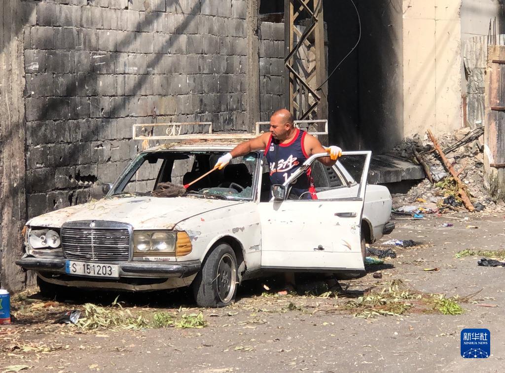8月1日,在黎巴嫩南部西頓市附近的艾因·哈勒瓦難民營,一名巴勒斯坦男子查看汽車受損情況。