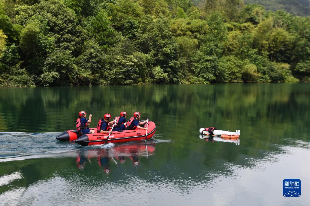 8月2日,浙江省湖州市吳興區道場鄉綜合應急救援隊在水庫開展應急救援訓練,模擬救援落水人員。