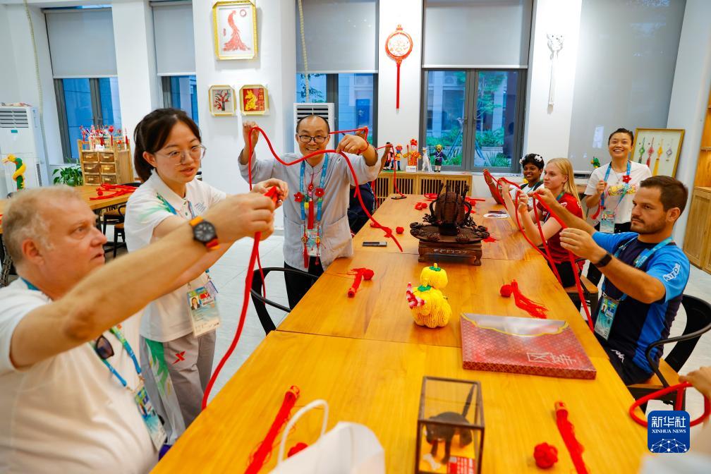 成都大運村里設置了書法、國畫、蜀繡、傳統樂器等豐富多彩的中國文化互動體驗項目。運動員和教練員在休息之時,紛紛前來感受中國文化的魅力,了解學習中國文化。