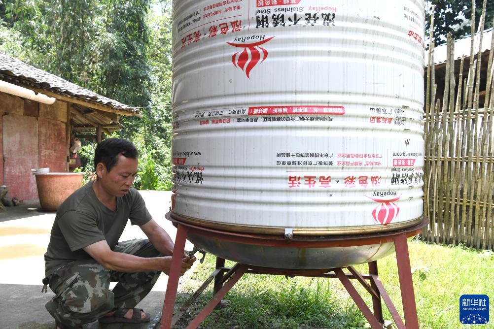 7月30日,陶文學的父親陶建明在那坡縣百省鄉水弄屯用收集的雨水洗手。新華社記者周華攝