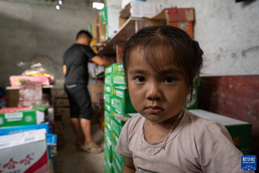 7月31日,吳世榮帶著女兒在商店里忙碌。新華社記者費茂華攝