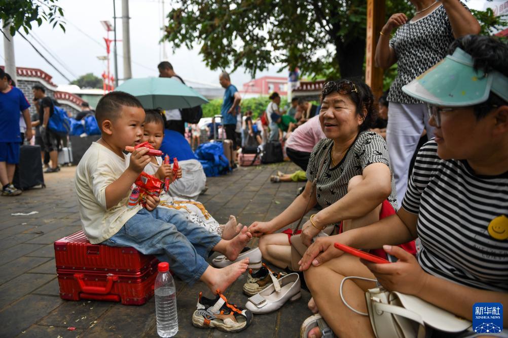 8月2日,K396次列車旅客在北京市門頭溝區妙峰山鎮政府附近休息,等候轉運。