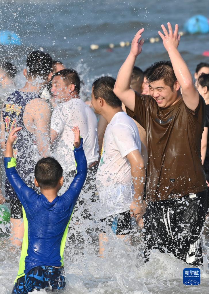 8月2日,游客在秦皇島市北戴河區東山浴場戲水。