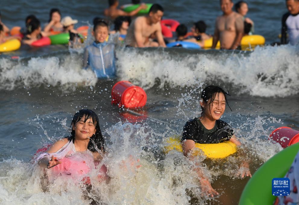 8月2日,游客在秦皇島市北戴河區東山浴場戲水。