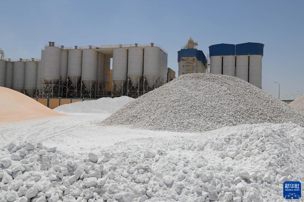 這是6月26日在位于埃及蘇伊士的巨石埃及公司拍攝的原料生產車間外景。