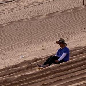 8月2日,游客在寧夏中衛市沙坡頭景區體驗滑沙。