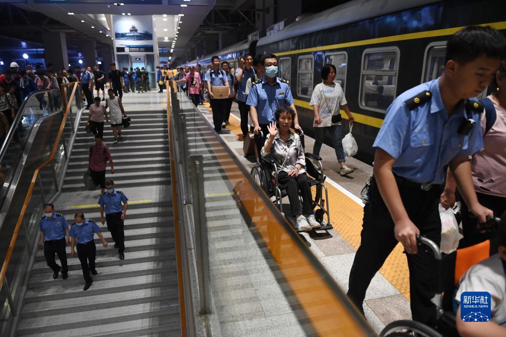 8月3日,K396次、Z180次列車的滯留旅客到達北京豐臺站。