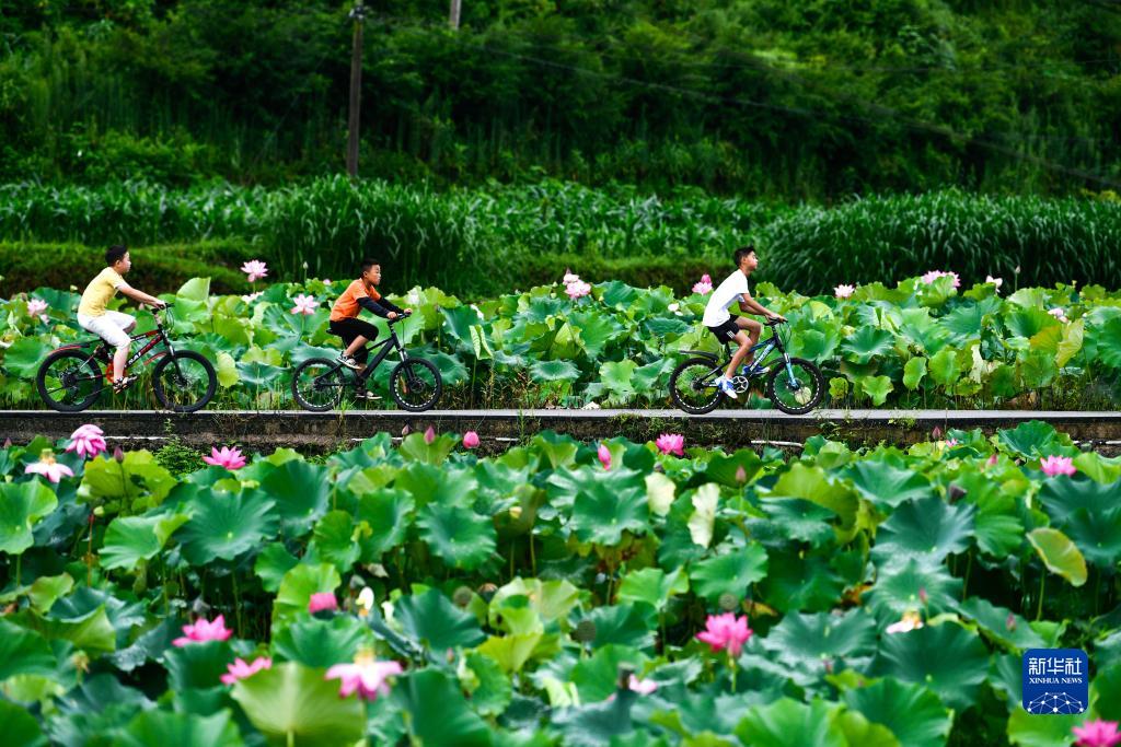 時下,貴州省岑鞏縣多地的荷花盛開,美麗的荷塘與村莊、稻田相映成趣,荷塘邊錯落有致的新民居、瓜果飄香的農家庭院,成為一道靚麗的風景。