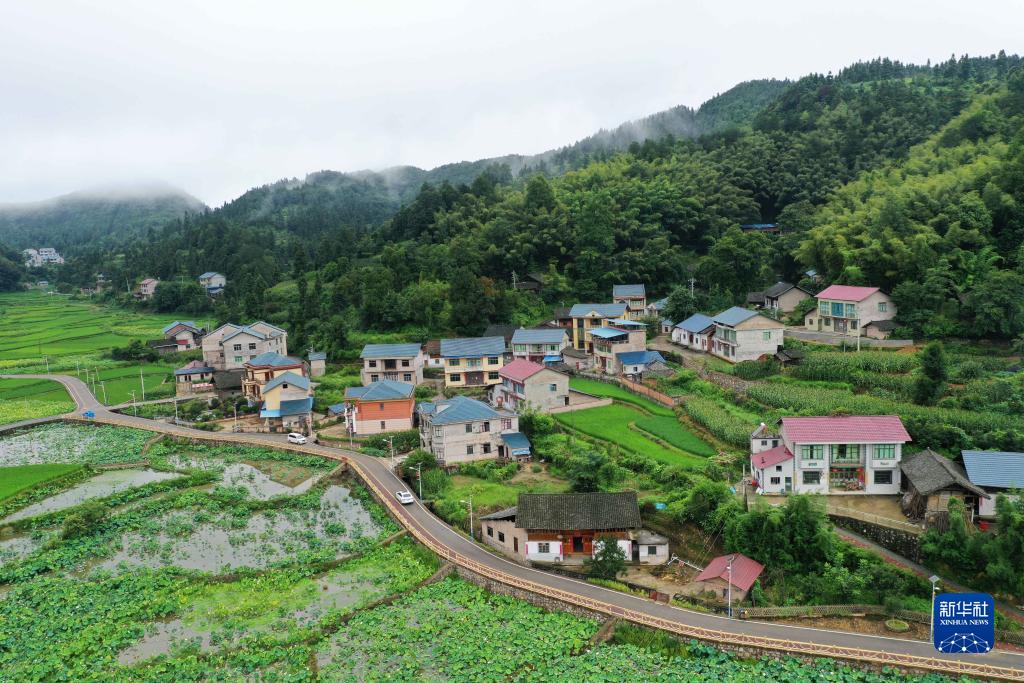 這是8月2日在貴州省岑鞏縣客樓鎮下寨村拍攝的新農村景色(無人機照片)。