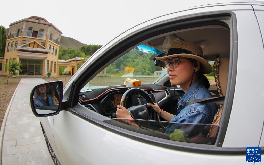 劉利平博士在高原核桃研究所駕駛車輛運輸物資(7月27日攝)。