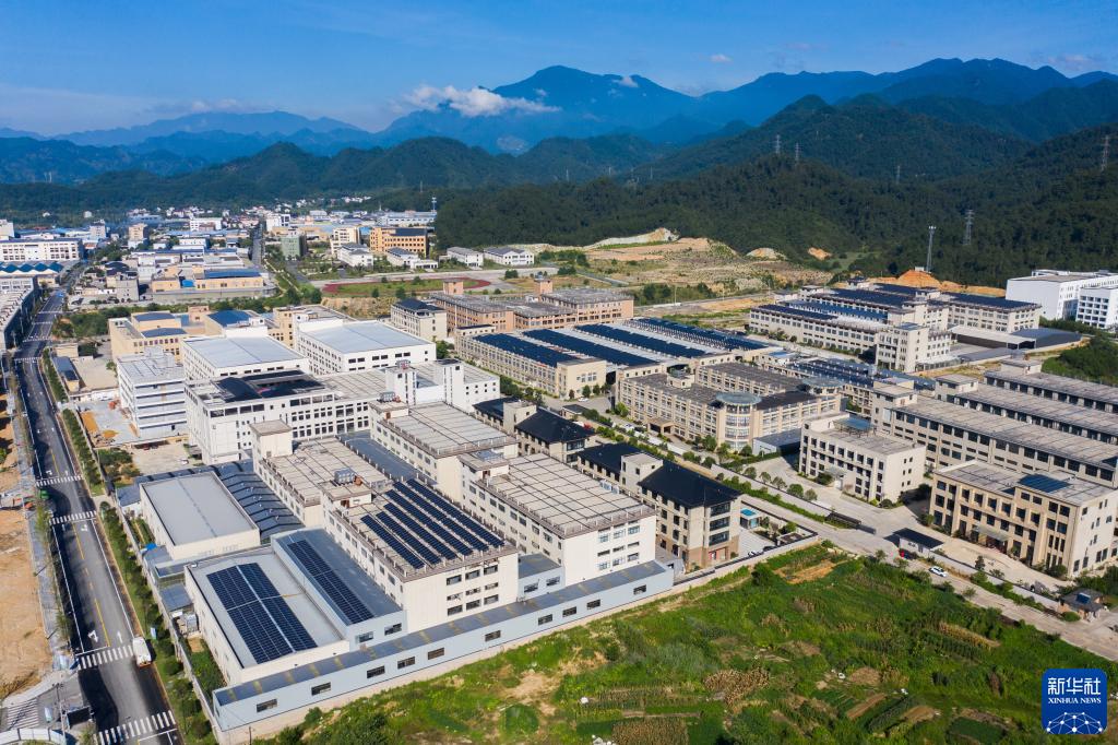 8月3日,空中俯瞰位于浙江省杭州市臨安區龍崗鎮的中國堅果炒貨食品城(無人機照片)。