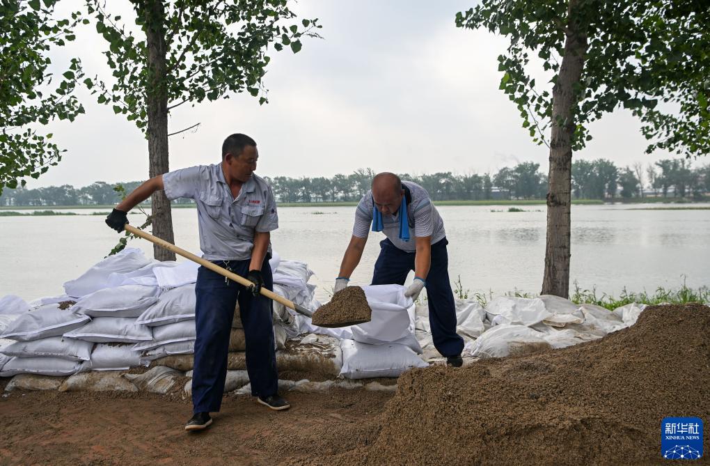 當日,來自中建、中交等多個單位的工人和靜海區當地村民共千余人忙碌在大清河天津市靜海段南北兩岸,持續進行兩岸堤壩加高加固工作,以應對大清河河道內不斷增長的上游來水。