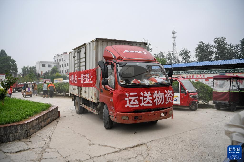 8月3日,運送物資的車輛駛入涿州市第三中學安置點。