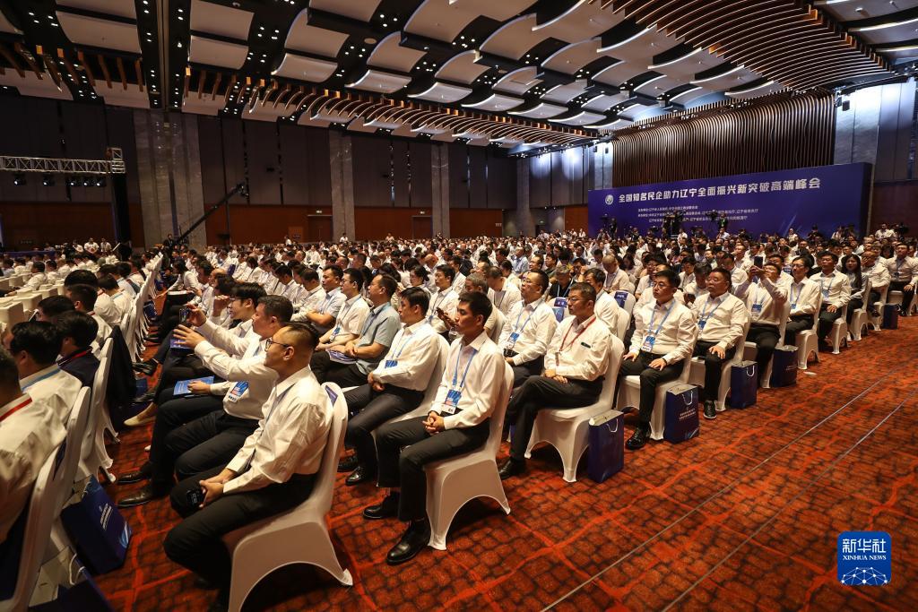 這是8月3日在遼寧沈陽拍攝的全國知名民企助力遼寧全面振興新突破高端峰會開幕式現場。