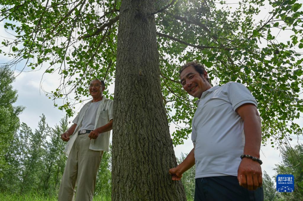 8月2日,百順(左)和三兒子金柱站在他們種的第一棵樹下。
