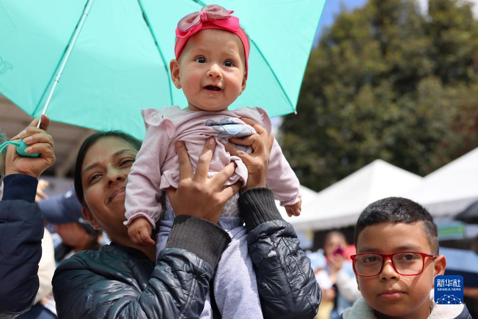 8月3日,在哥倫比亞首都波哥大,一位母親帶著孩子參加公開哺乳活動。