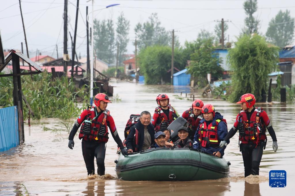 8月4日,哈爾濱市森林消防支隊特勤大隊消防員在尚志市一面坡鎮萬山村將被困群眾轉移至安全地域。