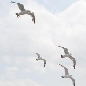 8月3日,游客在乘船前往蓬萊長島時觀賞海鷗。