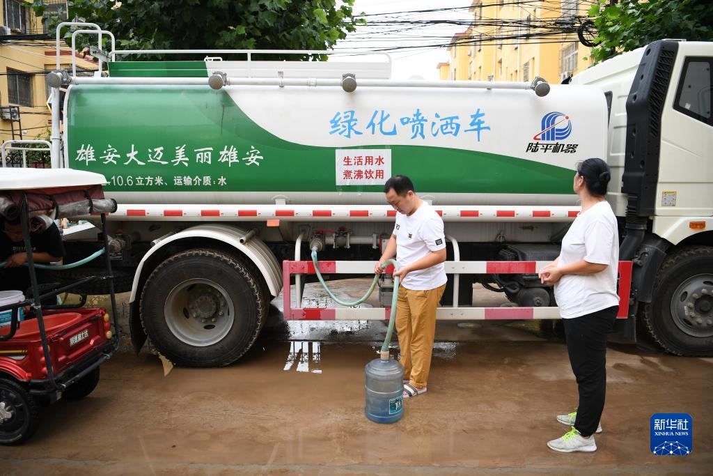 為緩解災后城鎮居民用水難題,目前,河北省涿州市已完成兩個臨時制水供水站點建設,站點內制水、檢測、調試、出水工作已完成。同時,涿州市利用各地市支援的供水罐裝車輛,為嚴重缺水地區供給生活用水。