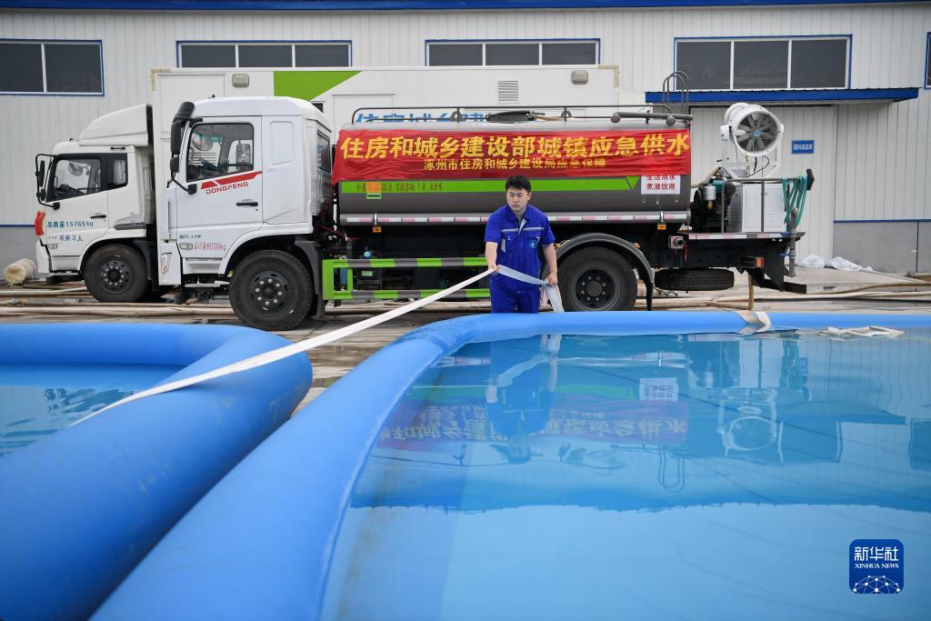 為緩解災后城鎮居民用水難題,目前,河北省涿州市已完成兩個臨時制水供水站點建設,站點內制水、檢測、調試、出水工作已完成。同時,涿州市利用各地市支援的供水罐裝車輛,為嚴重缺水地區供給生活用水。