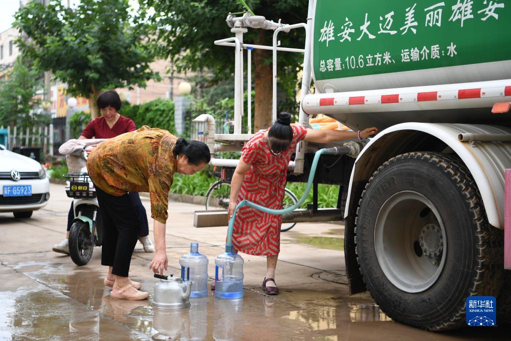為緩解災后城鎮居民用水難題,目前,河北省涿州市已完成兩個臨時制水供水站點建設,站點內制水、檢測、調試、出水工作已完成。同時,涿州市利用各地市支援的供水罐裝車輛,為嚴重缺水地區供給生活用水。