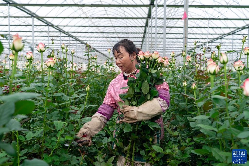 一名花農在云天化晉寧花卉產業現代化示范園內采摘鮮花(7月12日攝)。新華社記者 陳欣波 攝