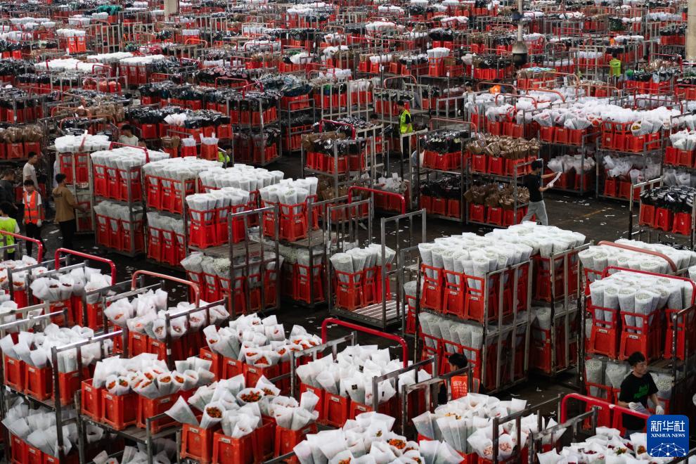 這是昆明國際花卉拍賣交易中心內等待進行拍賣的鮮花(7月13日攝)。新華社記者 陳欣波 攝