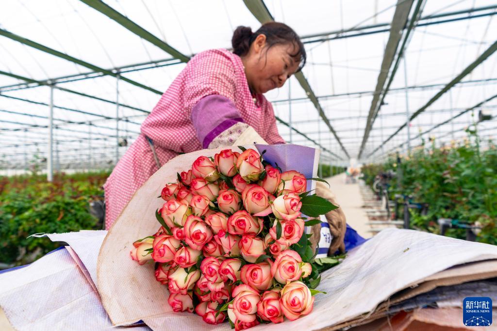 在云天化晉寧花卉產業現代化示范園內,花農對鮮花進行簡單打包(7月12日攝)。新華社記者 陳欣波 攝