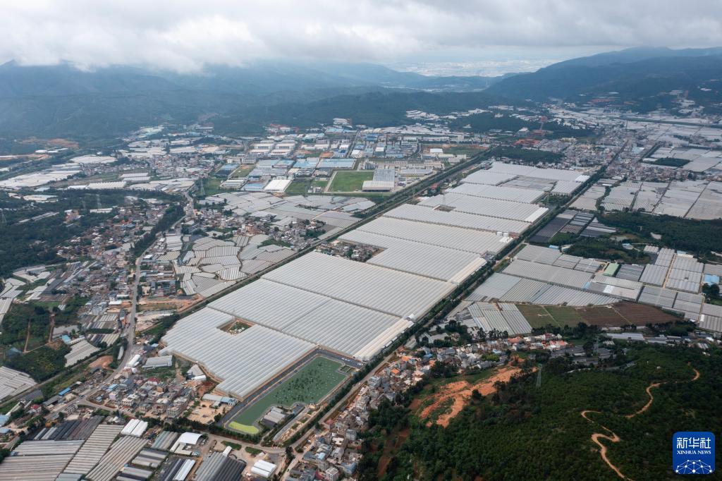 這是7月12日拍攝的云天化晉寧花卉產業現代化示范園(無人機照片)。新華社記者 陳欣波 攝