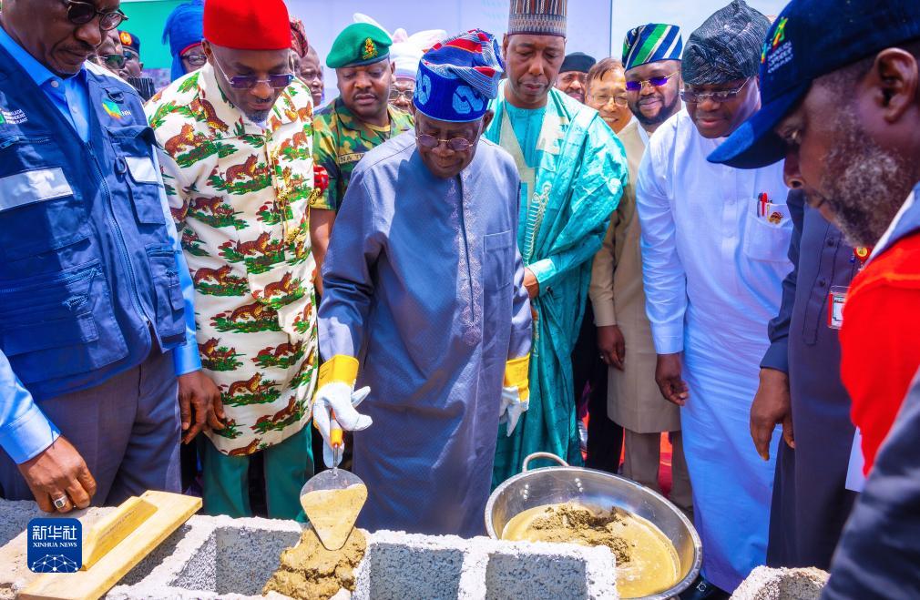 8月4日,尼日利亞總統提努布(前中)在阿布賈出席中企承建的尼日利亞天然氣發電站項目一期開工儀式。