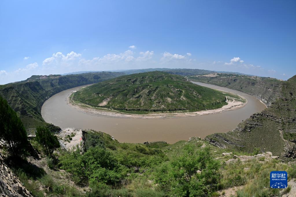 在山西省石樓縣辛關鎮拍攝的黃河奇灣(8月3日攝)。