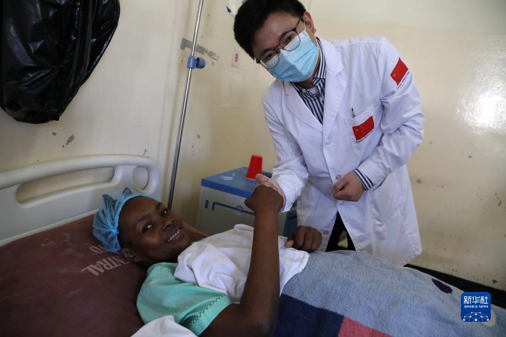 7月27日,在莫桑比克首都馬普托的馬普托中心醫院,中國醫療隊隊長、胰腺外科醫生張浩在病房查看術后患者。