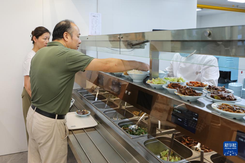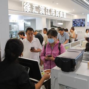 8月4日,顧客在徐匯濱江黨群服務中心的“徐匯濱江市民食堂”取餐。