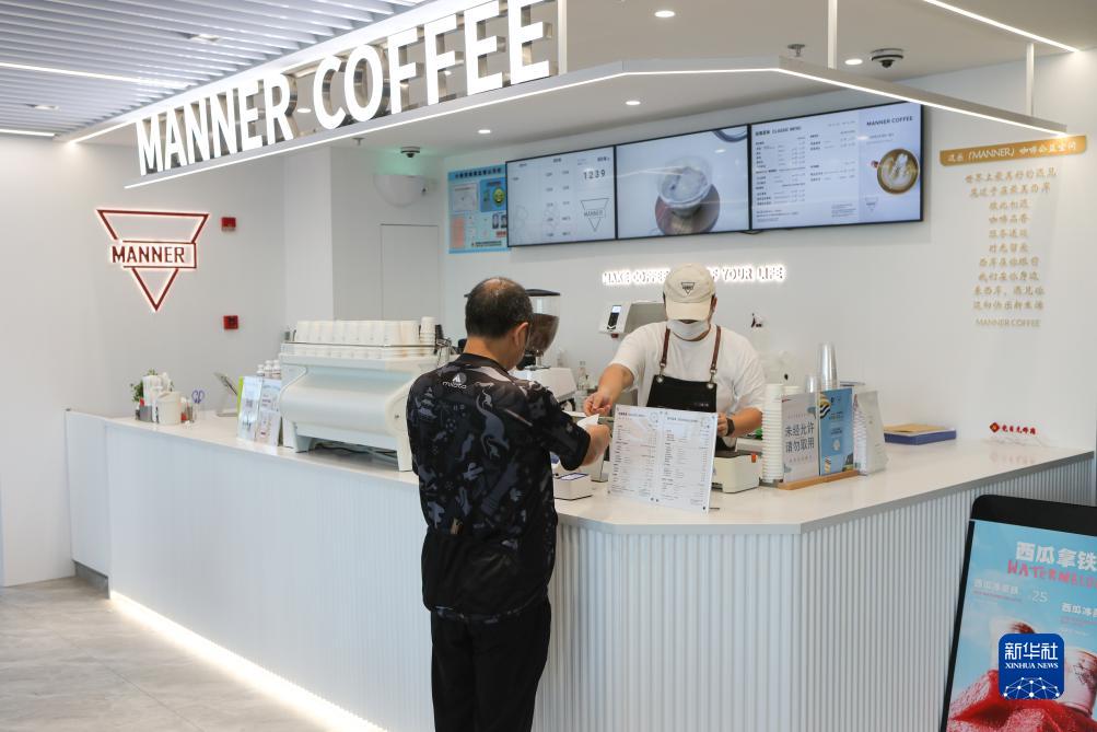 8月4日,顧客在徐匯濱江黨群服務中心的“咖啡公益空間”購買咖啡。