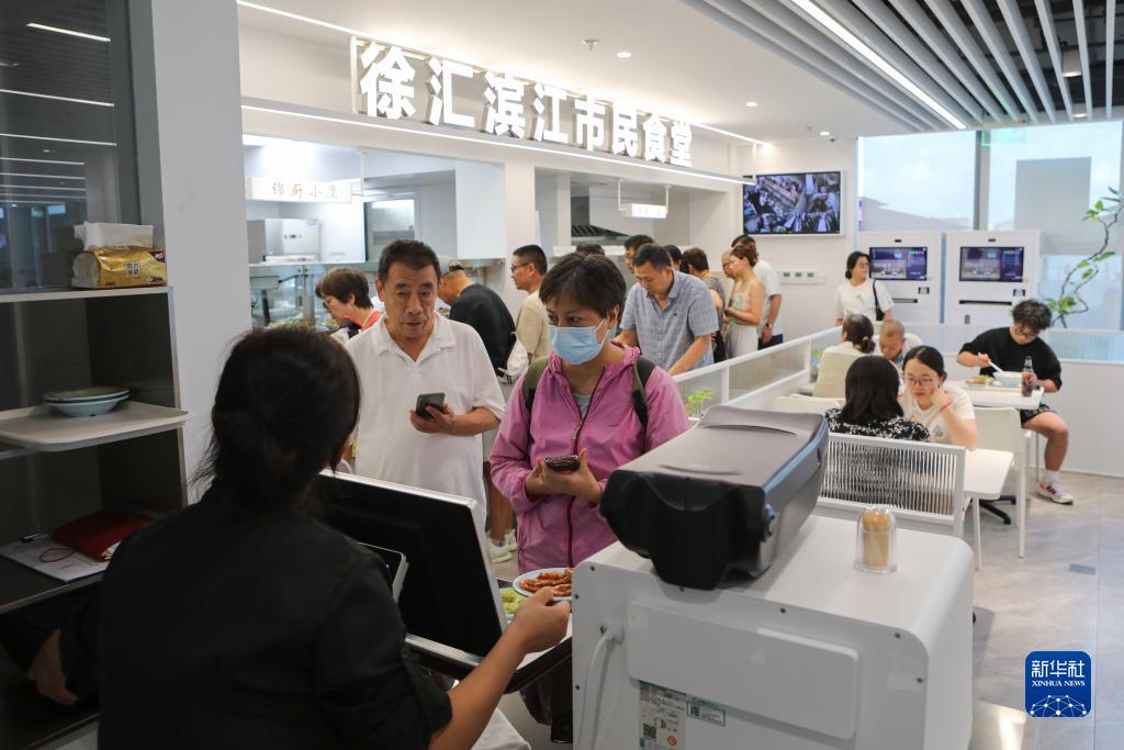 8月4日,顧客在徐匯濱江黨群服務中心的“徐匯濱江市民食堂”排隊結賬。