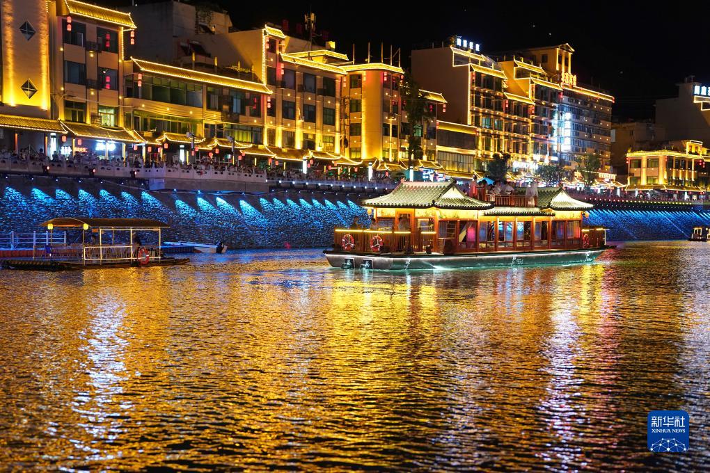 這是嵐皋縣縣城嵐河岸邊夜景(8月3日攝)。