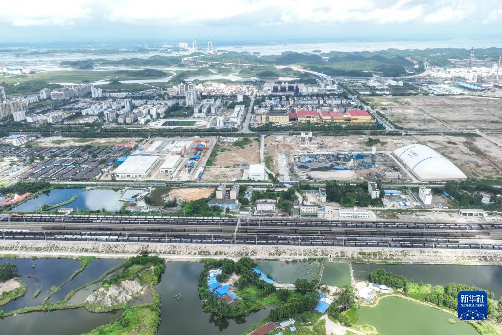 這是7月22日拍攝的欽州港站和周邊工業區(無人機照片)。