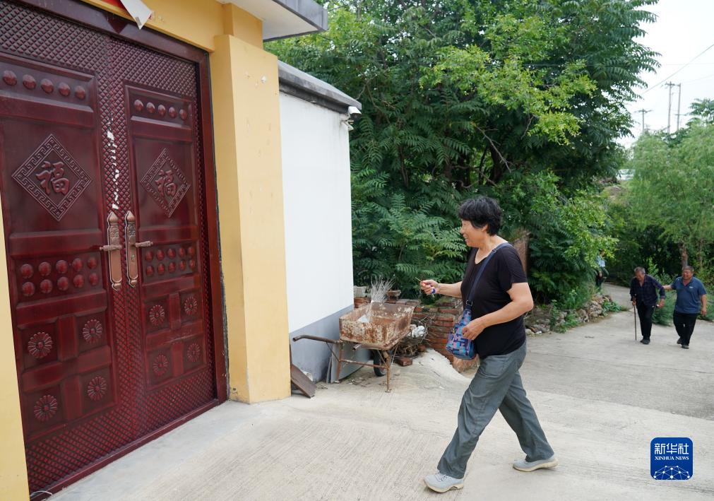 8月5日,從安置點回來的北京市房山區青龍湖鎮口頭村村民準備開門回家。