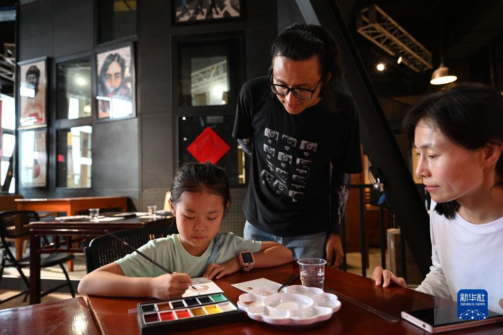 8月5日,小朋友在藝術課堂上學習畫畫。