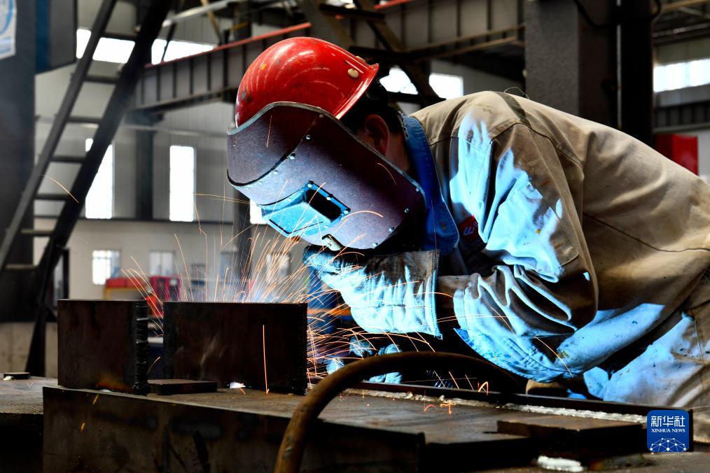 8月5日,在位于日照市東港區的山東力山特智能科技有限公司,工作人員在焊接智能行車設備。