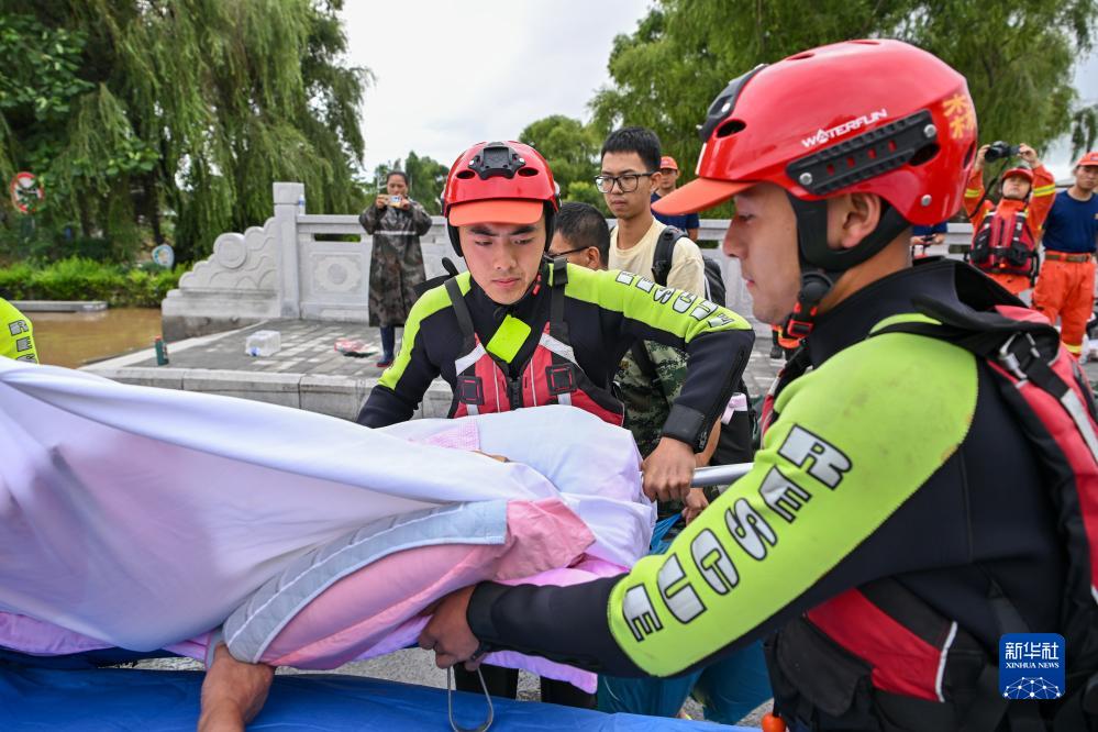 8月5日,哈爾濱森林消防支隊戰士在黑龍江省哈爾濱市延壽縣轉移病人。