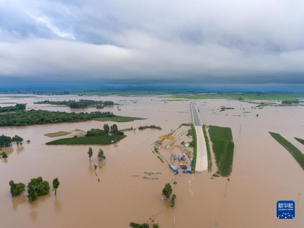 黑龍江省哈爾濱市延壽縣部分農田和道路被淹(8月5日攝,無人機照片)。