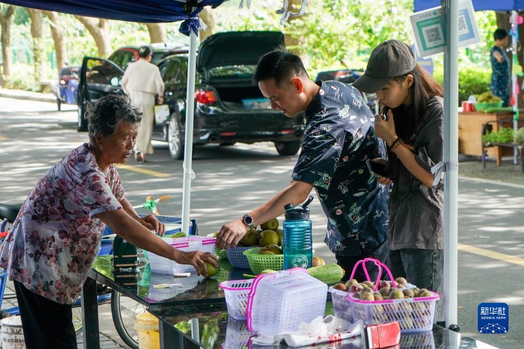 游客在蘇州市樹山村舉辦的“梨奇夏日”市集上選購翠冠梨(8月4日攝)。