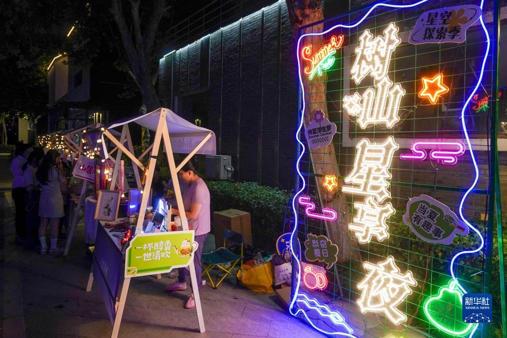 游客在蘇州市樹山村參加“樹山星享夜”市集活動(7月14日攝)。