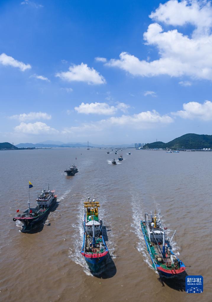 8月6日,漁船從舟山普陀沈家門漁港駛出,前往東海漁場。