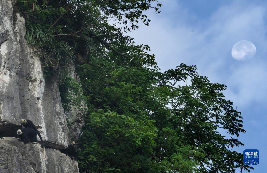 白頭葉猴,頭頂高聳著一撮白毛,是我國特有的國家一級重點保護野生動物,種群數量稀少,主要分布在廣西崇左市左江和明江之間約200平方公里的喀斯特石山地區。白頭葉猴還有個好聽的名字——“石山精靈”。